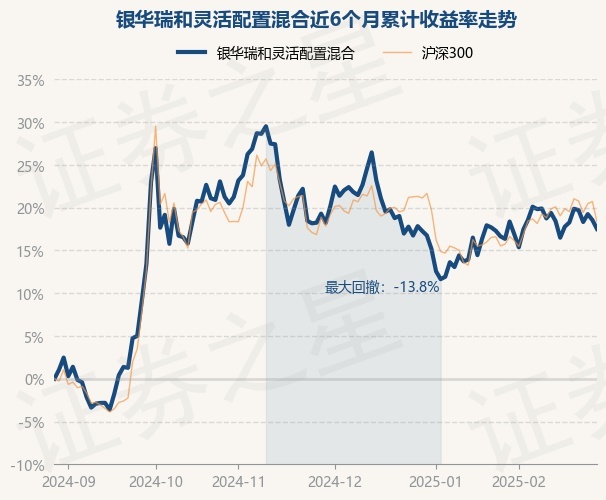 证券之星消息,2月28日,银华瑞和灵活配置混合最新单位净值为1.1128元,累计净值为1.1128元,较前一交易日下跌0.88%。历史数据显示该基金近1个月上涨0.51%,近3个月下跌0.6%,近6个月上涨17.51%,近1年上涨7.42%。该基金近6个月的累计收益率走势如下图: