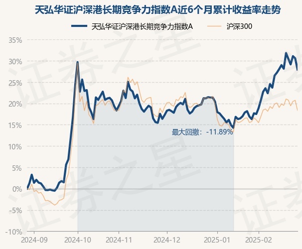 证券之星消息,2月28日,天弘华证沪深港长期竞争力指数A最新单位净值为0.9495元,累计净值为0.9495元,较前一交易日下跌2.01%。历史数据显示该基金近1个月上涨8.89%,近3个月上涨9.95%,近6个月上涨27.95%,近1年上涨31.0%。该基金近6个月的累计收益率走势如下图: