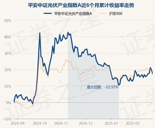 证券之星消息,2月28日,平安中证光伏产业指数A最新单位净值为0.5251元,累计净值为0.5251元,较前一交易日下跌1.98%。历史数据显示该基金近1个月上涨3.77%,近3个月下跌9.7%,近6个月上涨17.39%,近1年下跌7.16%。该基金近6个月的累计收益率走势如下图: