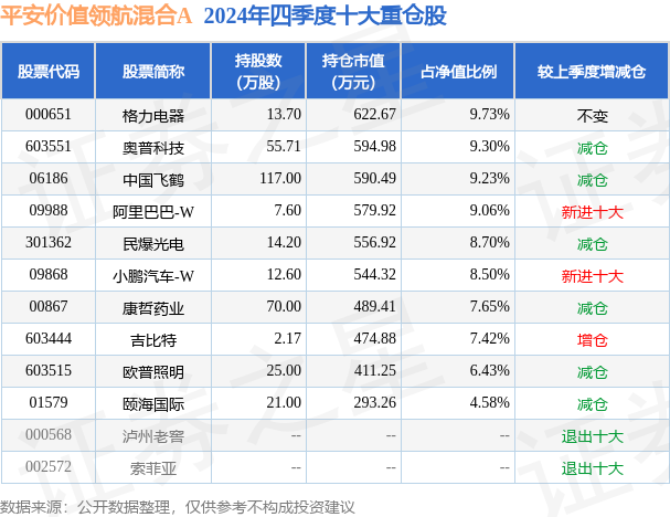 平安价值领航混合A为混合型-偏股基金,根据最新一期基金季报显示,该基金资产配置:股票占净值比89.93%,无债券类资产,现金占净值比8.44%。基金十大重仓股如下: