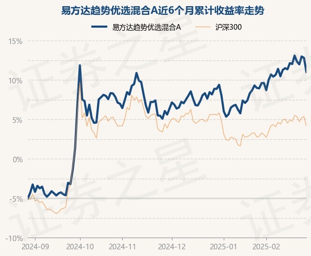 易方达趋势优选混合A为混合型-偏股基金,根据最新一期基金季报显示,该基金资产配置:股票占净值比94.18%,债券占净值比0.08%,现金占净值比5.98%。基金十大重仓股如下: