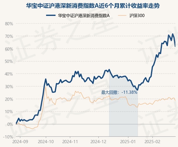 证券之星消息,2月28日,华宝中证沪港深新消费指数A最新单位净值为1.2573元,累计净值为1.2573元,较前一交易日下跌4.11%。历史数据显示该基金近1个月上涨17.42%,近3个月上涨19.29%,近6个月上涨61.73%,近1年上涨69.17%。该基金近6个月的累计收益率走势如下图:
