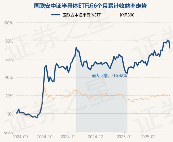 证券之星消息,2月28日,国联安中证半导体ETF最新单位净值为1.1084元,累计净值为2.2168元,较前一交易日下跌4.83%。历史数据显示该基金近1个月上涨12.02%,近3个月上涨12.29%,近6个月上涨71.1%,近1年上涨61.1%。该基金近6个月的累计收益率走势如下图: