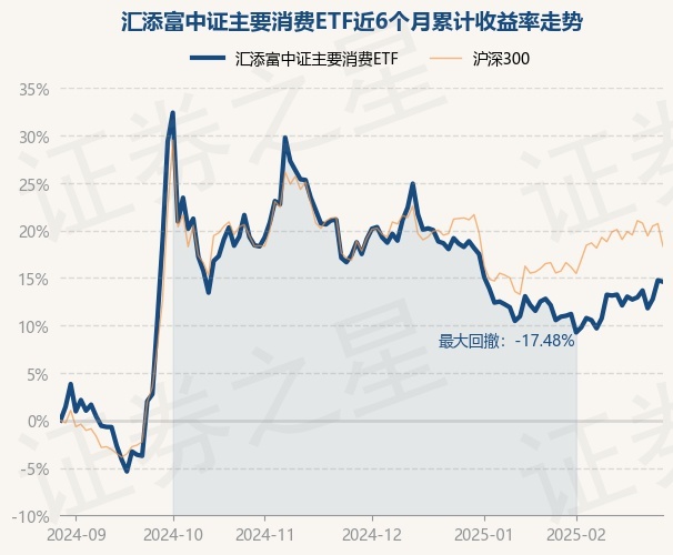 证券之星消息,2月28日,汇添富中证主要消费ETF最新单位净值为0.7968元,累计净值为3.1872元,较前一交易日下跌0.14%。历史数据显示该基金近1个月上涨3.05%,近3个月下跌2.48%,近6个月上涨14.6%,近1年下跌4.72%。该基金近6个月的累计收益率走势如下图: