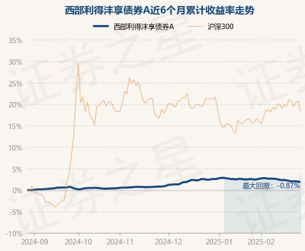 证券之星消息,2月28日,西部利得沣享债券A最新单位净值为1.0605元,累计净值为1.0905元,较前一交易日上涨0.0%。历史数据显示该基金近1个月下跌0.57%,近3个月上涨1.13%,近6个月上涨2.05%,近1年上涨4.09%。该基金近6个月的累计收益率走势如下图: