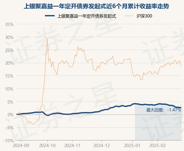 证券之星消息,2月28日,上银聚嘉益一年定开债券发起式最新单位净值为1.053元,累计净值为1.0908元,较前一交易日上涨0.0%。历史数据显示该基金近1个月下跌1.02%,近3个月上涨1.59%,近6个月上涨2.7%,近1年上涨6.04%。该基金近6个月的累计收益率走势如下图: