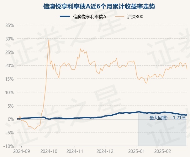 证券之星消息,2月28日,信澳悦享利率债A最新单位净值为1.0205元,累计净值为1.0457元,较前一交易日上涨0.13%。历史数据显示该基金近1个月下跌0.8%,近3个月上涨0.77%,近6个月上涨1.52%,近1年上涨3.25%。该基金近6个月的累计收益率走势如下图: