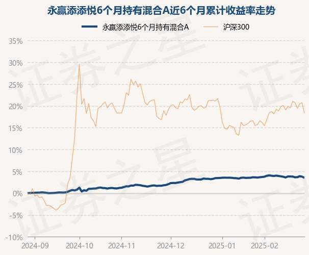 永赢添添悦6个月持有混合A为混合型-偏债基金,根据最新一期基金季报显示,该基金资产配置:无股票类资产,债券占净值比104.89%,现金占净值比0.09%。
