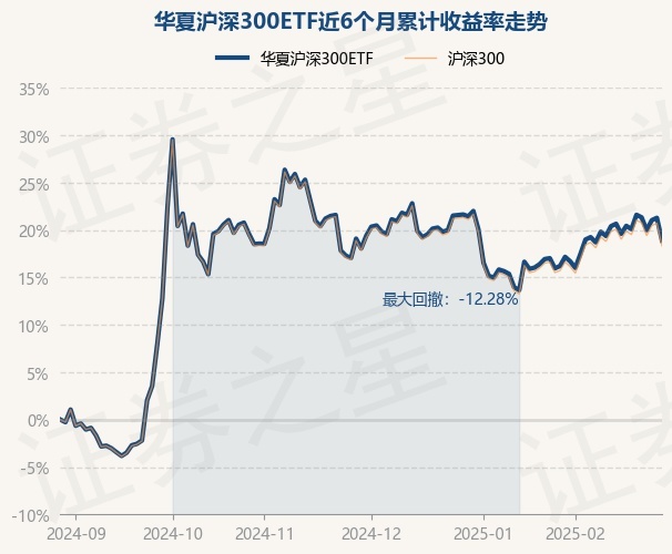 证券之星消息,2月28日,华夏沪深300ETF最新单位净值为4.0097元,累计净值为1.9607元,较前一交易日下跌1.97%。历史数据显示该基金近1个月上涨1.89%,近3个月上涨0.72%,近6个月上涨18.91%,近1年上涨15.75%。该基金近6个月的累计收益率走势如下图: