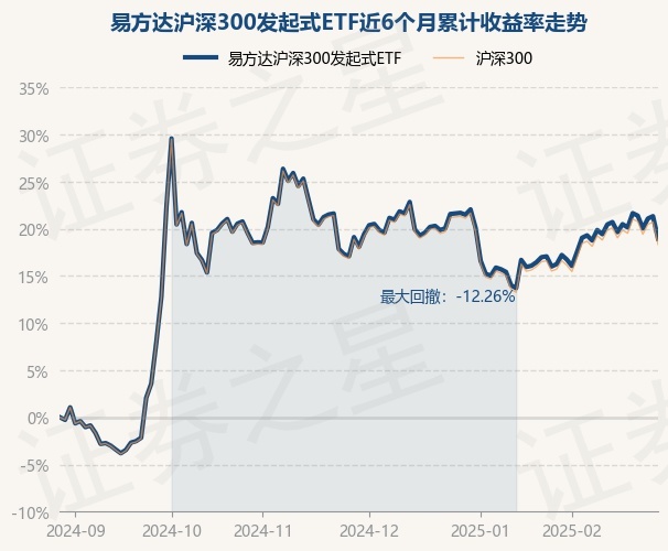 证券之星消息,2月28日,易方达沪深300发起式ETF最新单位净值为3.8276元,累计净值为1.9531元,较前一交易日下跌1.96%。历史数据显示该基金近1个月上涨1.9%,近3个月上涨0.73%,近6个月上涨18.96%,近1年上涨16.06%。该基金近6个月的累计收益率走势如下图: