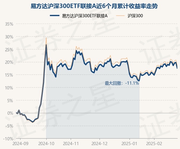 证券之星消息,2月28日,易方达沪深300ETF联接A最新单位净值为1.5388元,累计净值为1.5388元,较前一交易日下跌1.86%。历史数据显示该基金近1个月上涨1.81%,近3个月上涨0.73%,近6个月上涨17.56%,近1年上涨14.86%。该基金近6个月的累计收益率走势如下图: