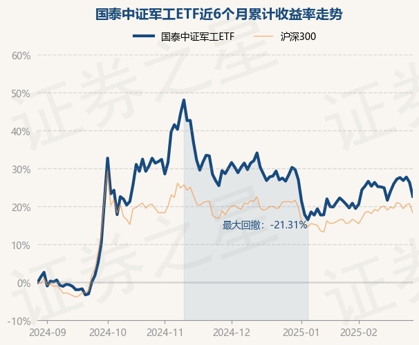 证券之星消息,2月28日,国泰中证军工ETF最新单位净值为1.0056元,累计净值为1.0056元,较前一交易日下跌2.9%。历史数据显示该基金近1个月上涨2.68%,近3个月下跌4.65%,近6个月上涨22.68%,近1年上涨18.4%。该基金近6个月的累计收益率走势如下图: