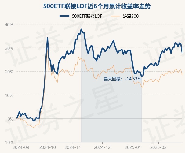 证券之星消息,2月28日,500ETF联接LOF最新单位净值为1.6372元,累计净值为1.7372元,较前一交易日下跌2.69%。历史数据显示该基金近1个月上涨4.53%,近3个月上涨1.63%,近6个月上涨28.02%,近1年上涨13.62%。该基金近6个月的累计收益率走势如下图: