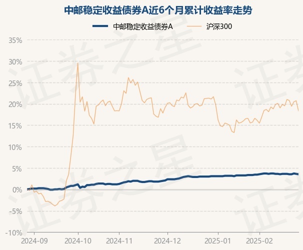 证券之星消息,2月28日,中邮稳定收益债券A最新单位净值为1.143元,累计净值为1.691元,较前一交易日下跌0.09%。历史数据显示该基金近1个月上涨0.09%,近3个月上涨1.51%,近6个月上涨3.53%,近1年上涨4.86%。该基金近6个月的累计收益率走势如下图: