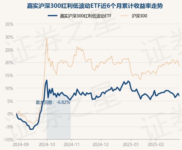 证券之星消息,2月28日,嘉实沪深300红利低波动ETF最新单位净值为1.3319元,累计净值为1.5982元,较前一交易日下跌0.78%。历史数据显示该基金近1个月下跌1.79%,近3个月上涨0.63%,近6个月上涨6.96%,近1年上涨12.63%。该基金近6个月的累计收益率走势如下图: