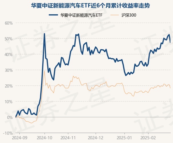 证券之星消息,2月28日,华夏中证新能源汽车ETF最新单位净值为1.3194元,累计净值为1.3194元,较前一交易日下跌3.23%。历史数据显示该基金近1个月上涨11.42%,近3个月上涨5.21%,近6个月上涨47.5%,近1年上涨24.72%。该基金近6个月的累计收益率走势如下图: