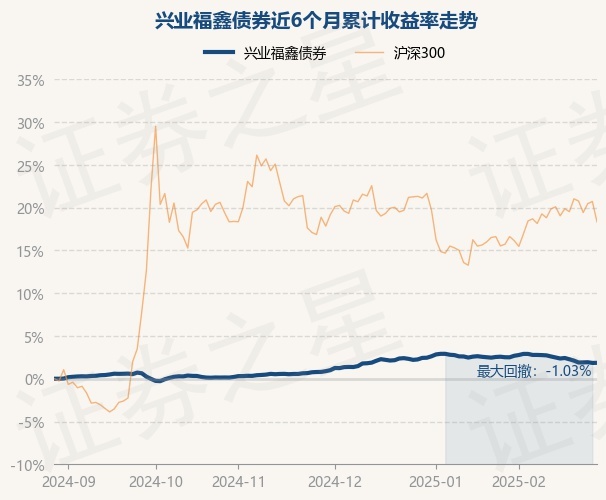 证券之星消息,2月28日,兴业福鑫债券最新单位净值为1.0248元,累计净值为1.3298元,较前一交易日上涨0.01%。历史数据显示该基金近1个月下跌0.8%,近3个月上涨0.97%,近6个月上涨1.86%,近1年上涨4.01%。该基金近6个月的累计收益率走势如下图: