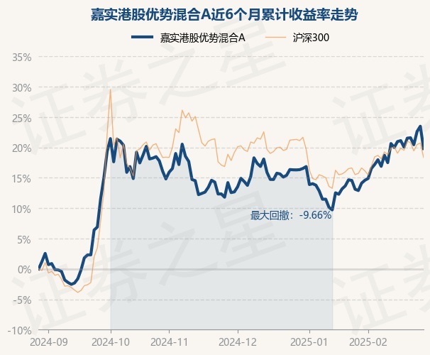证券之星消息,2月28日,嘉实港股优势混合A最新单位净值为0.9174元,累计净值为0.9174元,较前一交易日下跌2.97%。历史数据显示该基金近1个月上涨4.56%,近3个月上涨6.44%,近6个月上涨19.81%,近1年上涨31.13%。该基金近6个月的累计收益率走势如下图: