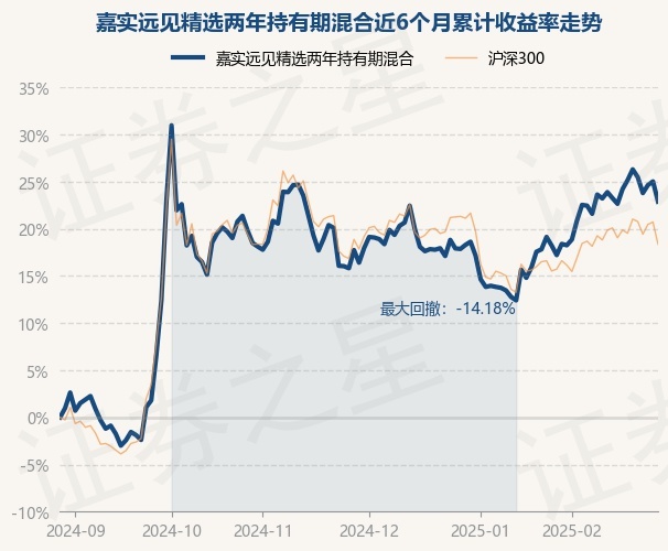 证券之星消息,2月28日,嘉实远见精选两年持有期混合最新单位净值为0.6261元,累计净值为0.6261元,较前一交易日下跌1.71%。历史数据显示该基金近1个月上涨3.92%,近3个月上涨5.56%,近6个月上涨22.89%,近1年上涨9.19%。该基金近6个月的累计收益率走势如下图: