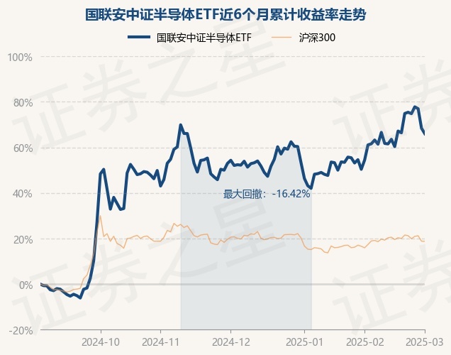证券之星消息,3月3日,国联安中证半导体ETF最新单位净值为1.0924元,累计净值为2.1848元,较前一交易日下跌1.44%。历史数据显示该基金近1个月上涨10.4%,近3个月上涨9.16%,近6个月上涨66.02%,近1年上涨46.51%。该基金近6个月的累计收益率走势如下图: