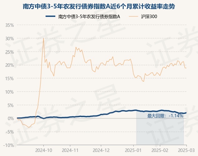 证券之星消息,3月3日,南方中债3-5年农发行债券指数A最新单位净值为1.1043元,累计净值为1.2573元,较前一交易日上涨0.17%。历史数据显示该基金近1个月下跌0.64%,近3个月上涨0.67%,近6个月上涨2.04%,近1年上涨4.96%。该基金近6个月的累计收益率走势如下图: