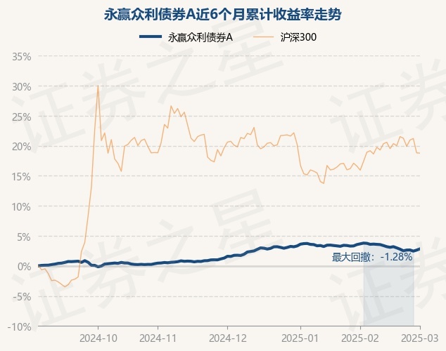 证券之星消息,3月3日,永赢众利债券A最新单位净值为1.1806元,累计净值为1.2381元,较前一交易日上涨0.2%。历史数据显示该基金近1个月下跌0.69%,近3个月上涨1.24%,近6个月上涨2.83%,近1年上涨6.05%。该基金近6个月的累计收益率走势如下图: