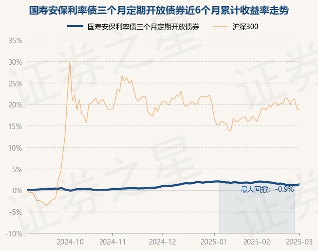 证券之星消息,3月3日,国寿安保利率债三个月定期开放债券最新单位净值为1.0291元,累计净值为1.0431元,较前一交易日上涨0.17%。历史数据显示该基金近1个月下跌0.48%,近3个月上涨0.43%,近6个月上涨1.36%,近1年上涨3.89%。该基金近6个月的累计收益率走势如下图: