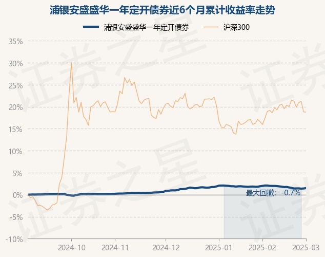 证券之星消息,3月3日,浦银安盛盛华一年定开债券最新单位净值为1.0298元,累计净值为1.1328元,较前一交易日上涨0.09%。历史数据显示该基金近1个月下跌0.42%,近3个月上涨0.64%,近6个月上涨1.5%,近1年上涨3.52%。该基金近6个月的累计收益率走势如下图: