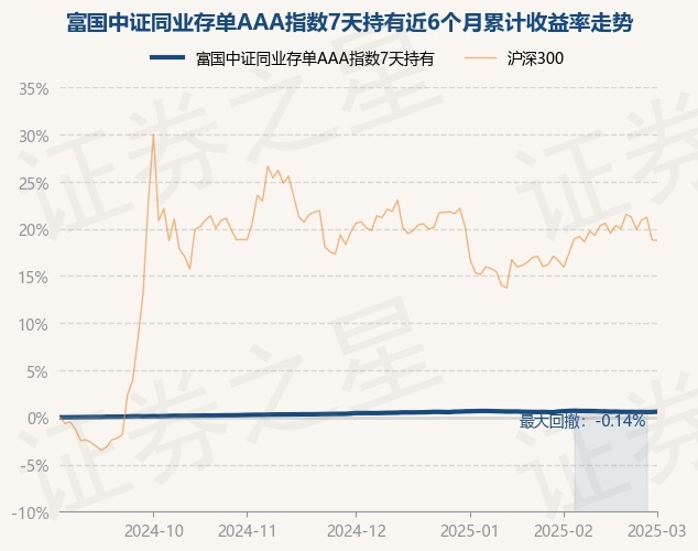 证券之星消息,3月3日,富国中证同业存单AAA指数7天持有最新单位净值为1.0728元,累计净值为1.0728元,较前一交易日上涨0.03%。历史数据显示该基金近1个月下跌0.02%,近3个月上涨0.15%,近6个月上涨0.6%,近1年上涨1.52%。该基金近6个月的累计收益率走势如下图: