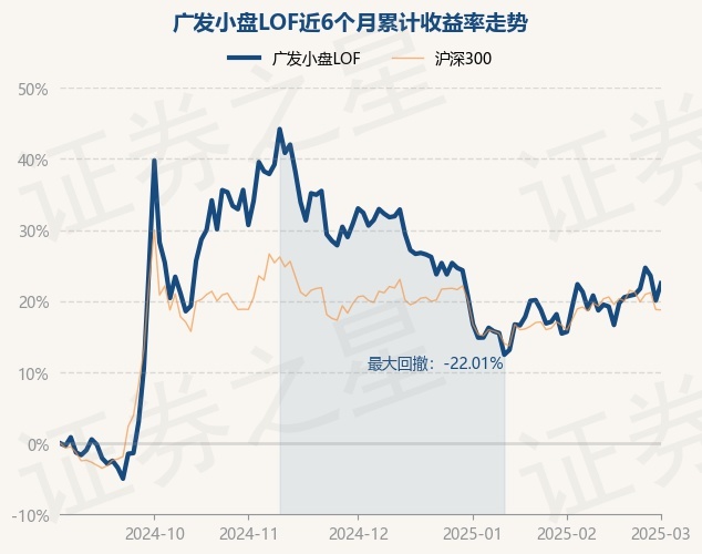证券之星消息,3月3日,广发小盘LOF最新单位净值为1.3425元,累计净值为4.7136元,较前一交易日上涨2.02%。历史数据显示该基金近1个月上涨6.12%,近3个月下跌7.5%,近6个月上涨22.5%,近1年上涨5.63%。该基金近6个月的累计收益率走势如下图: