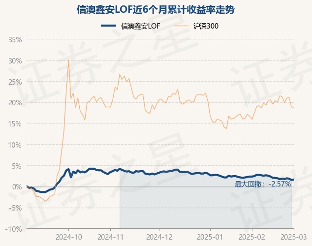 证券之星消息,3月3日,信澳鑫安LOF最新单位净值为0.994元,累计净值为1.372元,较前一交易日上涨0.1%。历史数据显示该基金近1个月下跌0.7%,近3个月下跌1.78%,近6个月上涨1.59%,近1年下跌0.34%。该基金近6个月的累计收益率走势如下图: