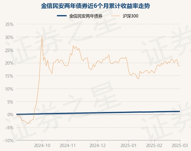 证券之星消息,3月3日,金信民安两年债券最新单位净值为1.0421元,累计净值为1.0421元,较前一交易日上涨0.02%。历史数据显示该基金近1个月上涨0.19%,近3个月上涨0.52%,近6个月上涨1.15%,近1年上涨2.42%。该基金近6个月的累计收益率走势如下图: