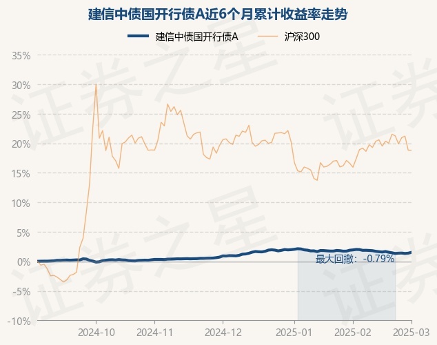 证券之星消息,3月3日,建信中债国开行债A最新单位净值为1.0747元,累计净值为1.2347元,较前一交易日上涨0.14%。历史数据显示该基金近1个月下跌0.35%,近3个月上涨0.62%,近6个月上涨1.52%,近1年上涨4.19%。该基金近6个月的累计收益率走势如下图: