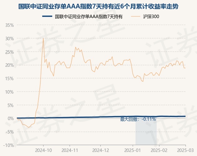 证券之星消息,3月3日,国联中证同业存单AAA指数7天持有最新单位净值为1.0494元,累计净值为1.0494元,较前一交易日上涨0.02%。历史数据显示该基金近1个月上涨0.05%,近3个月上涨0.2%,近6个月上涨0.69%,近1年上涨1.73%。该基金近6个月的累计收益率走势如下图: