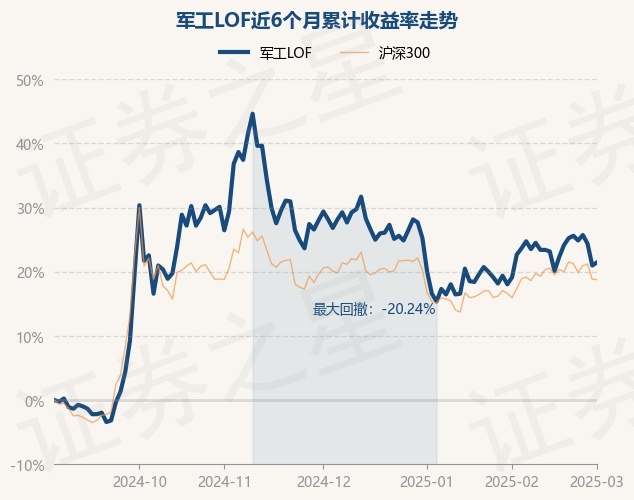 证券之星消息,3月3日,军工LOF最新单位净值为0.996元,累计净值为1.712元,较前一交易日上涨0.4%。历史数据显示该基金近1个月上涨2.89%,近3个月下跌5.23%,近6个月上涨21.46%,近1年上涨11.53%。该基金近6个月的累计收益率走势如下图: