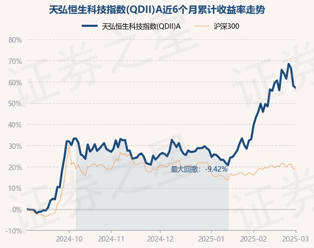 证券之星消息,3月3日,天弘恒生科技指数(QDII)A最新单位净值为0.8076元,累计净值为0.8076元,较前一交易日下跌0.59%。历史数据显示该基金近1个月上涨18.14%,近3个月上涨24.28%,近6个月上涨57.15%,近1年上涨58.91%。该基金近6个月的累计收益率走势如下图: