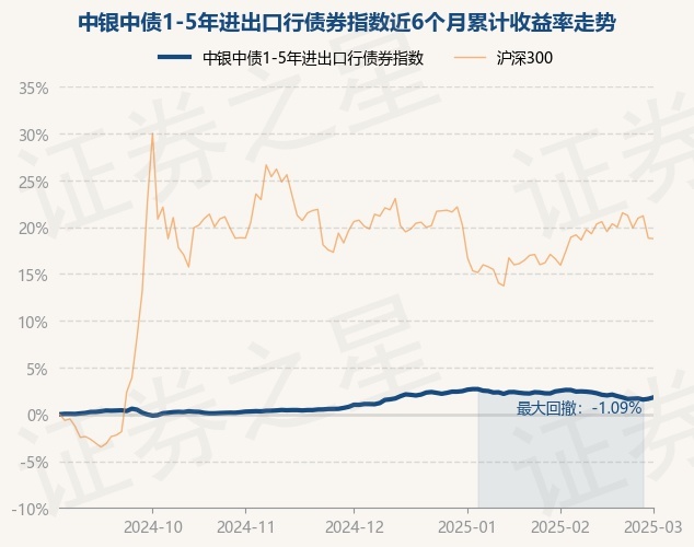 证券之星消息,3月3日,中银中债1-5年进出口行债券指数最新单位净值为1.0456元,累计净值为1.0665元,较前一交易日上涨0.15%。历史数据显示该基金近1个月下跌0.63%,近3个月上涨0.79%,近6个月上涨1.81%,近1年上涨4.34%。该基金近6个月的累计收益率走势如下图: