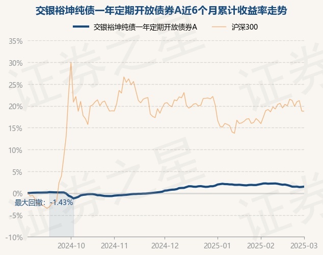 交银裕坤纯债一年定期开放债券A为债券型-长债基金,根据最新一期基金季报显示,该基金资产配置:无股票类资产,债券占净值比139.87%,现金占净值比1.04%。
