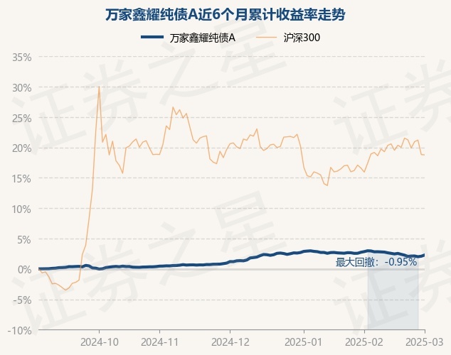 证券之星消息,3月3日,万家鑫耀纯债A最新单位净值为1.0388元,累计净值为1.0902元,较前一交易日上涨0.19%。历史数据显示该基金近1个月下跌0.44%,近3个月上涨1.08%,近6个月上涨2.28%,近1年上涨4.66%。该基金近6个月的累计收益率走势如下图:
