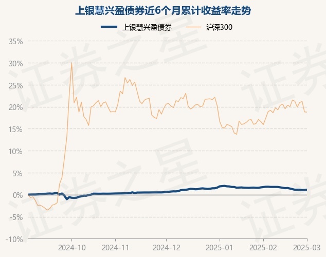 证券之星消息,3月3日,上银慧兴盈债券最新单位净值为1.0533元,累计净值为1.1289元,较前一交易日上涨0.05%。历史数据显示该基金近1个月下跌0.55%,近3个月上涨0.45%,近6个月上涨1.1%,近1年上涨3.17%。该基金近6个月的累计收益率走势如下图: