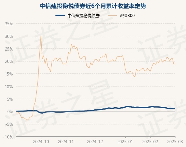 证券之星消息,3月3日,中信建投稳悦债券最新单位净值为1.0428元,累计净值为1.2158元,较前一交易日上涨0.08%。历史数据显示该基金近1个月下跌0.48%,近3个月上涨0.66%,近6个月上涨1.21%,近1年上涨2.98%。该基金近6个月的累计收益率走势如下图: