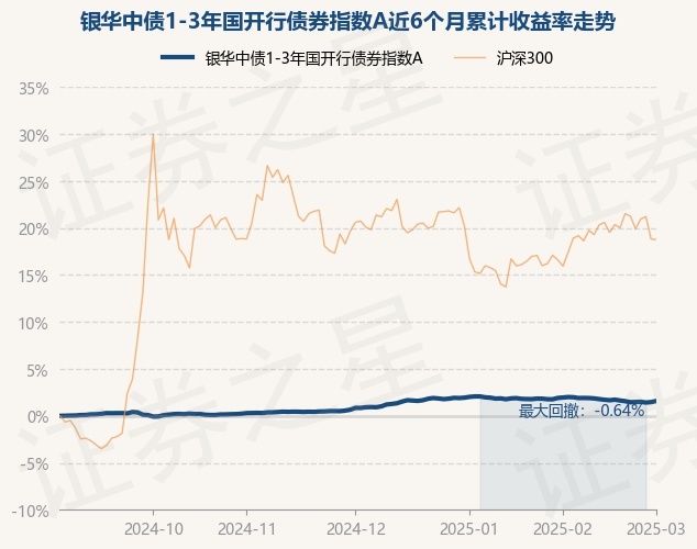 证券之星消息,3月3日,银华中债1-3年国开行债券指数A最新单位净值为1.0624元,累计净值为1.1614元,较前一交易日上涨0.11%。历史数据显示该基金近1个月下跌0.32%,近3个月上涨0.73%,近6个月上涨1.58%,近1年上涨3.64%。该基金近6个月的累计收益率走势如下图:
