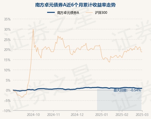 证券之星消息,3月3日,南方卓元债券A最新单位净值为1.0784元,累计净值为1.3558元,较前一交易日上涨0.03%。历史数据显示该基金近1个月下跌0.16%,近3个月上涨0.06%,近6个月上涨0.89%,近1年上涨2.11%。该基金近6个月的累计收益率走势如下图: