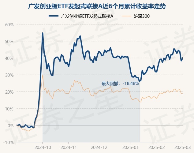 证券之星消息,3月3日,广发创业板ETF发起式联接A最新单位净值为1.2051元,累计净值为1.2051元,较前一交易日上涨1.18%。历史数据显示该基金近1个月上涨6.16%,近3个月下跌2.32%,近6个月上涨39.93%,近1年上涨21.48%。该基金近6个月的累计收益率走势如下图: