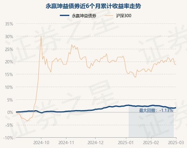 证券之星消息,3月3日,永赢坤益债券最新单位净值为1.0585元,累计净值为1.0855元,较前一交易日上涨0.15%。历史数据显示该基金近1个月下跌0.67%,近3个月上涨0.65%,近6个月上涨1.77%,近1年上涨3.99%。该基金近6个月的累计收益率走势如下图: