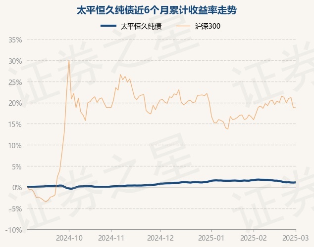 证券之星消息,3月3日,太平恒久纯债最新单位净值为1.0259元,累计净值为1.4209元,较前一交易日上涨0.05%。历史数据显示该基金近1个月下跌0.49%,近3个月上涨0.29%,近6个月上涨1.11%,近1年上涨3.58%。该基金近6个月的累计收益率走势如下图: