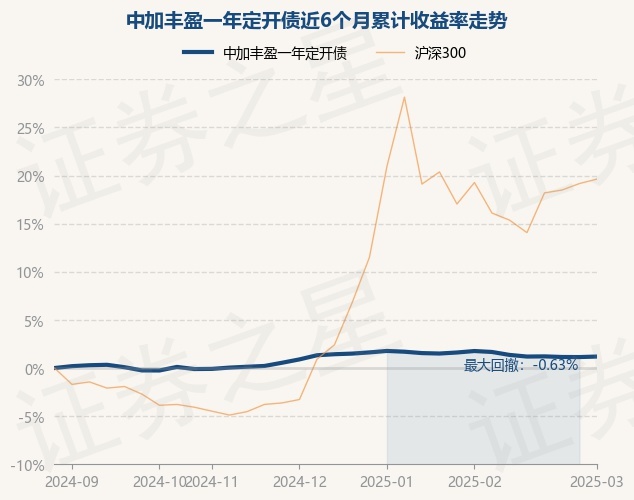 证券之星消息,3月3日,中加丰盈一年定开债最新单位净值为1.1278元,累计净值为1.3276元,较前一交易日上涨0.05%。历史数据显示该基金近1个月下跌0.42%,近3个月上涨0.64%,近6个月上涨1.16%,近1年上涨2.65%。该基金近6个月的累计收益率走势如下图: