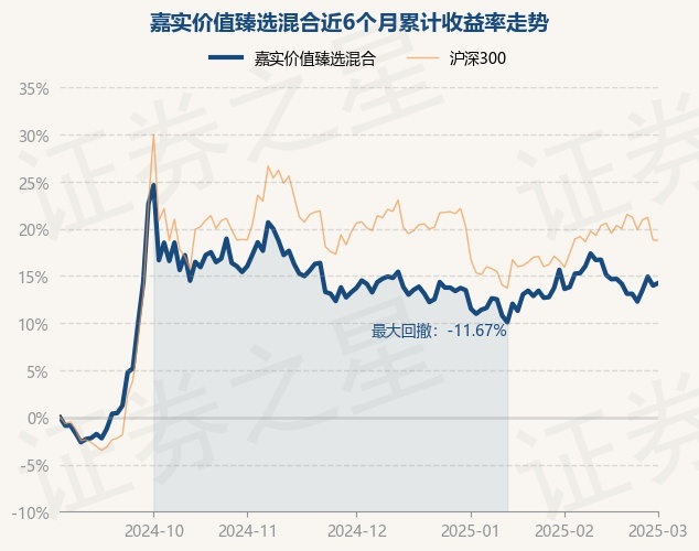 证券之星消息,3月3日,嘉实价值臻选混合最新单位净值为0.8342元,累计净值为0.8342元,较前一交易日上涨0.23%。历史数据显示该基金近1个月下跌1.22%,近3个月下跌0.24%,近6个月上涨14.24%,近1年上涨9.27%。该基金近6个月的累计收益率走势如下图: