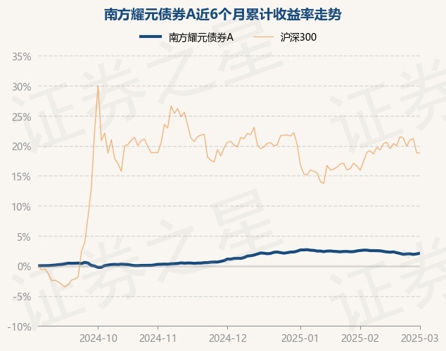 证券之星消息,3月3日,南方耀元债券A最新单位净值为1.0386元,累计净值为1.0716元,较前一交易日上涨0.11%。历史数据显示该基金近1个月下跌0.37%,近3个月上涨0.97%,近6个月上涨2.1%,近1年上涨3.71%。该基金近6个月的累计收益率走势如下图: