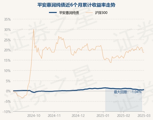证券之星消息,3月3日,平安惠润纯债最新单位净值为1.0341元,累计净值为1.1431元,较前一交易日上涨0.09%。历史数据显示该基金近1个月下跌0.49%,近3个月上涨0.17%,近6个月上涨0.61%,近1年上涨1.77%。该基金近6个月的累计收益率走势如下图: